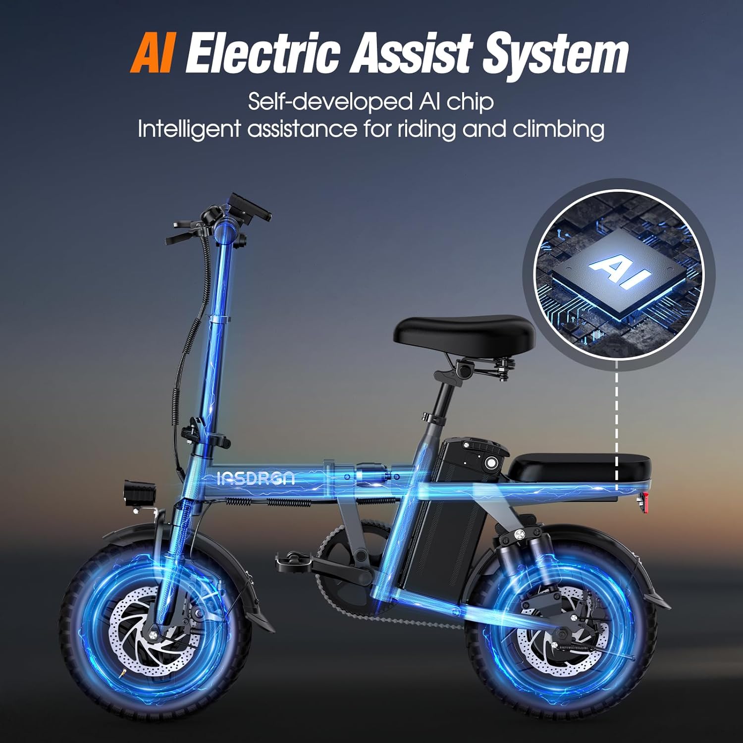 La bicicleta eléctrica INSDRGN A14 incorpora asistencia de pedal impulsada por IA, ajustando automáticamente el nivel de ayuda sin intervención manual. Esto garantiza una conducción suave, sin esfuerzo y completamente libre de estrés.