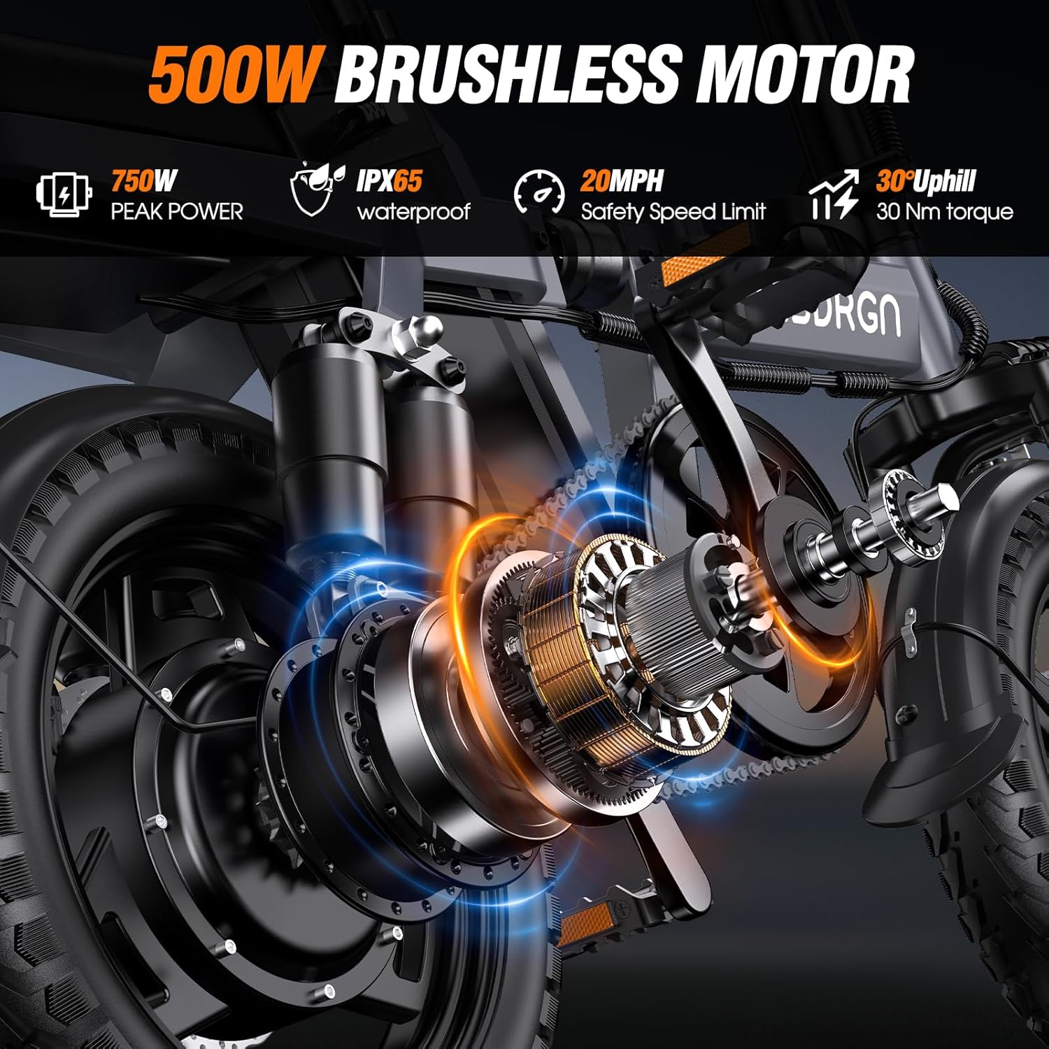 - Ruedas de 14 × 2.125 pulgadas para mejor agarre y eficiencia